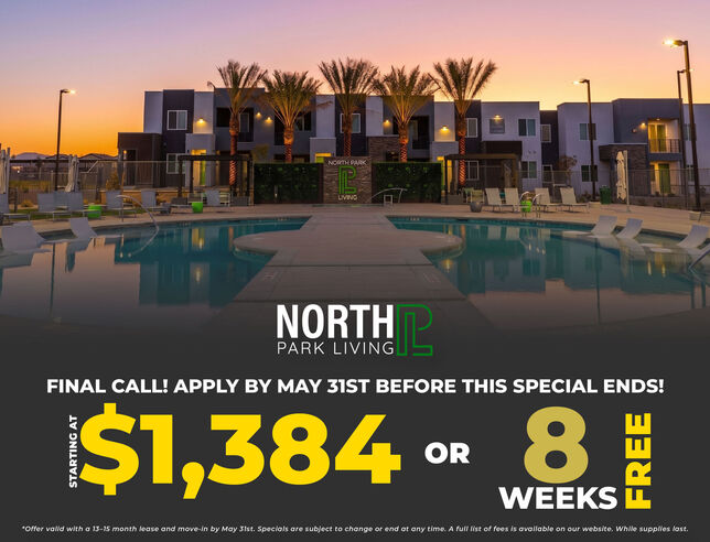 At North Park Living, our 1, 2, and 3-bedroom apartments in North Las Vegas have what it takes to transform your lifestyle. No matter which floor plan you select, you can count on the latest smart-home technology to keep your days running smoothly. Your contemporary kitchen with quartz countertops elevates every cooking experience, while your in-home washer and dryer set makes doing laundry much less of a hassle. Each home also includes expansive walk-in closets, so you won’t have to worry about running out of storage space.